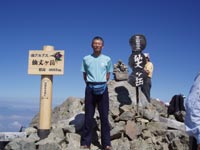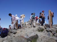 仙丈ヶ岳山頂。平日なのでこんなものだが、土日には狭いかも知れない。 ゆっくり1時間近く過ごす。おかげで下山は大あわてする羽目になった。 |