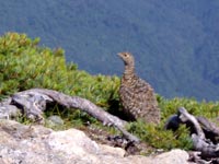 小仙丈まで登るとカールが見えて大感動。いっぺんでこの山が好きになってしまった。 小仙丈を少し越えた辺りでライチョウを見かける。全く逃げようとしない。 |