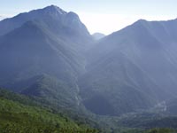 ![]() | ←←登っていくと、鋸岳の向こうに八ヶ岳が見えてくる。 テント場、昨日登った沢道、仙水峠や駒ヶ岳がよく見える。→→ |