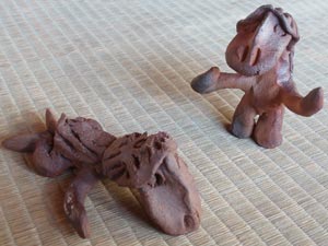 一角に全国から工芸品の作家が集まってテントを出していた。木彫や焼き物の中にカッパが居た。 一つとして同じ物がない。それぞれがあまりに魅力的で目移りしたが、結局2点買う。家に帰って、見れば見るほど味があって、他のを買わなかったのが悔やまれる。 |