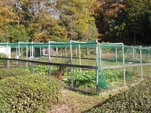 普段は人影もなく、こうして金網で囲っておかないとサルやイノシシに全部荒らされてしまう山里だ。紅葉の2,3週間だけにぎわう。 初雪の頃も実に良い風情だが、その頃人を見かけることはあまりない。 |
