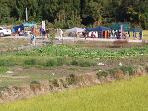 | 飯福寺をこえて、己高庵の方も見に行く。テントを出してうどんなどを売っている。知り合いに声をかけたら、天気がよいので思ったより人が多くて、材料の追加を買わなければならない、と言っていた。 | ![]() |