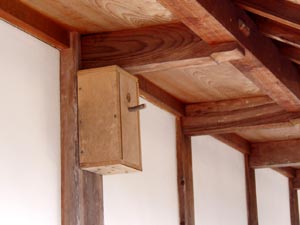 | 屋根に出たついでに、巣箱を設置する。営巣するのは春だが、今から設置しておくと冬の間に様子を見に来て、具合が良ければ春に巣を作る。 USBカメラを取り付けて、観察しやすいようにしておこうかとも思うのだが。チョト面倒。 |