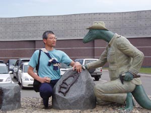 | 帰りに新しい恐竜博物館に寄る。こんな田舎にずいぶん大きくて立派な博物館でビックリする。もう少し交通の便が良ければ、相当な入館者数だろう。展示の量が多すぎてちょっと食傷気味と感じるほどだ。 山中にあって、入り口を見落としそうになった。ちゃんとした案内看板を上げればよいのに。このへんがお役所仕事だなあ。 |  |