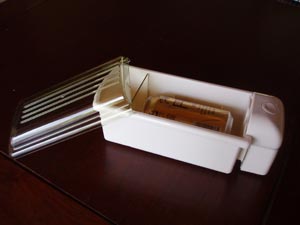 ずっと以前にビールを冷やし忘れたことがあって、あまりに私が嘆き悲しんでいるのを哀れんで、妻が通販で「ビール冷やし機」を買ってくれた。 缶ビールを模型用のモーターでグルグル回して氷で冷やすという単純なものだ。しかし効果はバツグンで、3分もたてばキンキンに冷える。 滅多に使うものではないが、一台有ると精神衛生上非常によい。 |