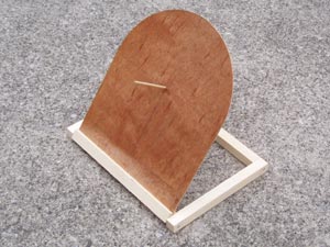 普通、日時計は棒の影を円盤に映して時間を知る。逆に円盤の影が棒に映った位置を調べれば、月日が分かる。 ということで、月日の分かる日時計(「日カレンダー」というべきか)をつくってみる。 構造は至って簡単だ。ベニヤ板を糸ノコで丸く切るのに一番手間取った。緯度の変更も構造的には簡単なのだが、持ち歩くことはないので固定してしまう。 |