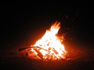 踊りの中心にあったたき火だけは、今でも燃やされる。煙にいぶし出されて、ムササビが飛び回ることがある。