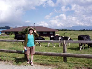 中央自動車道から長野自動車道へ入って、松本インターから美ヶ原へ。 高速降りてから山道をドンドン登って(標高は松本600m→美ヶ原2000m)行く。こんな高いところに平地があるのが面白い。溶岩台地という、火山性の地形だ。 |