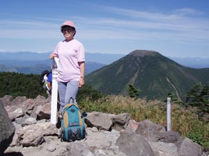 ペンションで一泊してロープウェイで北横岳に登る。「八ヶ岳」と言うからたくさんの山がずらりと並んで尾根づたいなので、ヒマが有れば縦走したいところだが。 簡単に登れるので、家族連れのハイキング客が多い。山頂は人がいっぱい。 写真の背景は蓼科山。 |