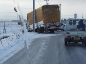 この2日だけで落ちている車を4台見た。その内3台はトラックだ。トラックは他府県ナンバーが多い。雪慣れしていないのだろうか。