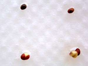 左下の、外側が割れて、中身がのぞいている物も「発芽した」とカウントする。