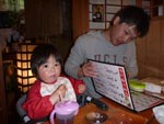 彦根某所で旧知の数名と飲み会。今年のはじめはごたごたが多くて、今頃新年会だ。親の飲み会に巻き込まれたこの子、遅くなってもあまり眠たそうでない。