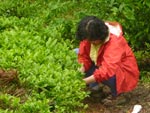 台風が直撃コースで、天気は下り坂。すっかり諦めていたのだが、朝起きたら、雨はしぐれ程度だった。本降りにならないうちに、とあわてて茶摘みをする。いつ降り出すかと、慌ただしい。