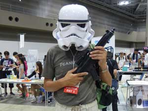 | タチコマを作った人もいるようだ。 少佐がいないかと探したが、コスプレは禁止らしい。(居たけど、見えなかったのかも知れない。) |